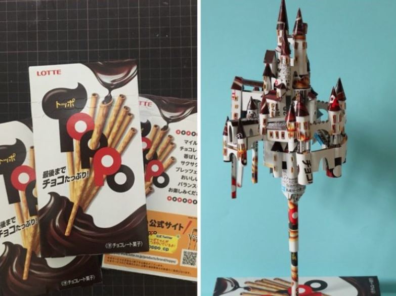 7.巧克力棒包裝盒,瞬間變成懸浮在空中的天空之城,乍看很像宮崎駿動畫會出現的場景~