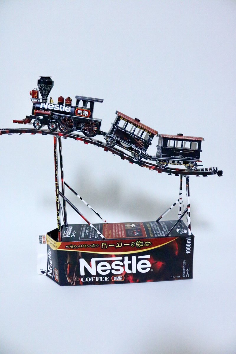 高架軌道不說,就連火車本體的造型細節,完全是有在用心設計的,不說真的不知道是用飲料盒作的啊!