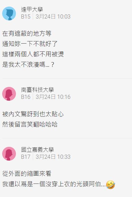 但也有不少網友歪樓,「蛋都熟了...不會拿個布擋太陽喔,男友也傻傻的」、「可能想感受妳的溫度」、「在有遮蔽的地方等,通知妳一下不就好了,這樣兩個人都不用被燙,是我太不浪漫嗎?」、「其實放安全帽就好,吸熱效果超nice」。