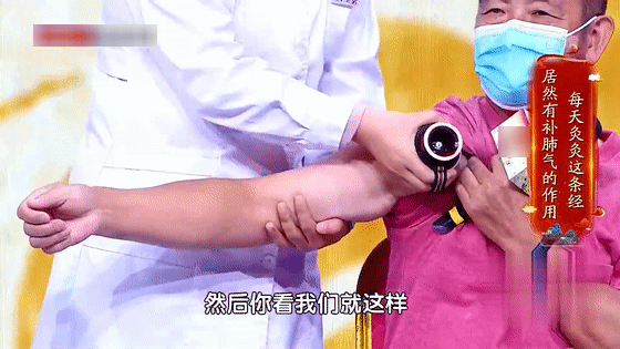 接下來用艾灸罐先從上到下沿著手太陰肺經進行艾灸,灸10分鐘。然後著重灸中府穴、尺澤穴、太淵穴,每個穴位灸5~10分鐘。
