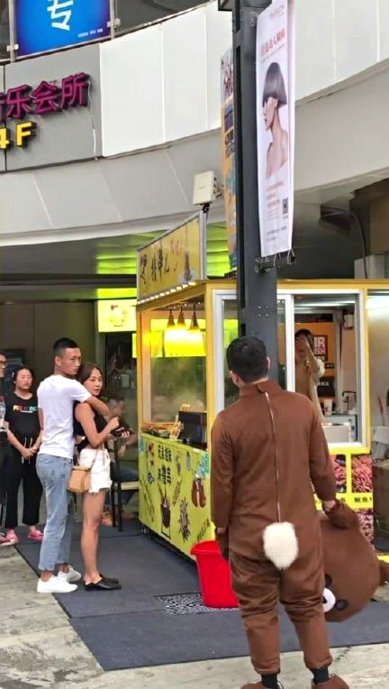 只見一系列照片中,穿著熊玩偶裝的男主角出現在一個公眾場合中,站在他對面的是一對互動親暱的男女,女子依偎在後方男子懷抱,模樣看起來相當甜蜜,這一切全被男主角看在眼裡,只見他脫下頭套,默默地注視著心愛的女友背著自己劈腿...