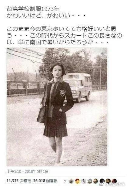 過去日本推特瘋傳一張制服美女的照片,不過時代、地點卻是「台灣1973年學校制服」,照片中的少女頂著一頭俐落短髮,身穿學校的西裝外套和領帶,搭配百褶裙以及整齊的皮鞋,將書包單側背在肩上,一手插著口袋,眼神不經意地望著遠方,纖細身材加上精緻五官,看起來清純又不失氣質。